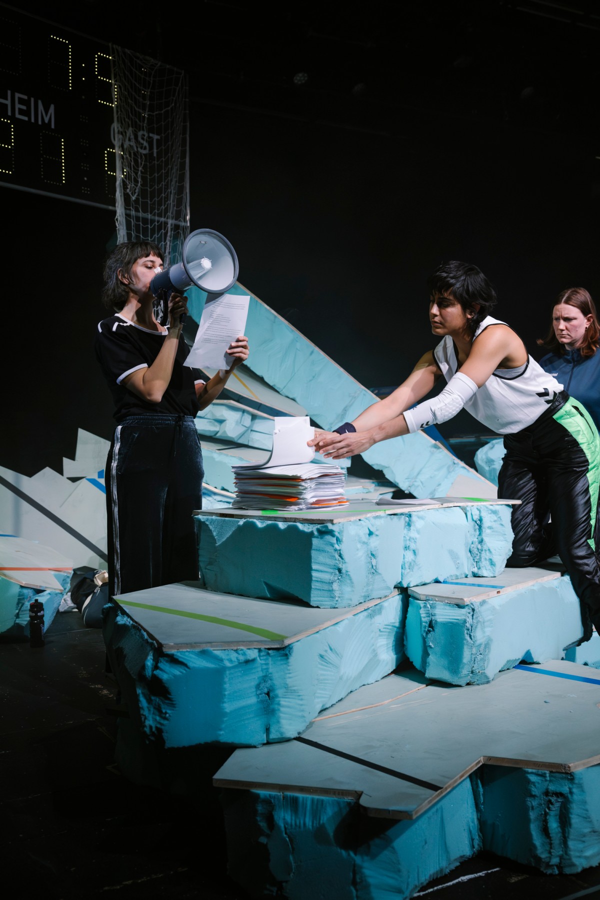 Von den Rändern des Spitzensports aus spricht ein Team von Handballerinnen. Sie laufen, atmen, lassen Muskeln spielen. Ihre Leistungen sind nie genug, der Jubel am Spielfeld nur vorübergehend. Da, wo das Training aufhört, finden die Spielerinnen zur Sprache. Sie entlarven sexualisierte Körperbilder, berichten von Konkurrenz und Solidarität, sie misstrauen den Worten des Trainers. Langsam tasten sie sich vor und formulieren die Grenzen überforderter Körper in knappen Trikots und unter unsportlichen Berührungen. Sie probieren über das zu sprechen, was lange ungesagt geblieben ist. Zärtlich klingt die Sprache von Freundinnen. Gemeinsam klagen sie an.