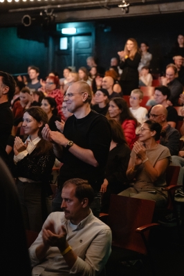 Ausgangspunkt ist der Sprechchor Pumpajmo glasno (Lass uns laut pumpen), den Ensemblemitglied Tina Keserović mit Mitgliedern der serbischen Diaspora aus Wien und Linz entwickelt hat: Stimmen, die den Rhythmus der Proteste aufnehmen, Stimmen, die Wut, Hoffnung und Beharrlichkeit tragen. Die Künstlerin Zoe Gudović wirft in einem Live-Essay ihren ganz persönlichen Blick auf die politischen Verwerfungen der Region. Dazu bringt die Band Deca iz Vode – EKV-Tribute-Band und Begleiterin der Proteste – ihren Sound und ihre Erzählungen von den Straßen Belgrads auf die Bühne. Der Kurzfilm Tačka pucanja (Bruchpunkt) von Lazar Jovanović, die Aktivist:innen von Blokada Beč, unterschiedliche Stimmen aus Serbien und die Wiener Punkband Ausländer eröffnen weitere Perspektiven auf Widerstand und Solidarität. Zum Abschluss: eine Stunde Tanz zu den Sounds der Queer Yugo Pop Party. Die Bühne wird zum Auftakt der neuen Saison mit allen eingetanzt. Im SchauspielhausWien Beč wird Diskurs zu Disko und Bewegung zu Protest. Die Veranstaltung wird moderiert von Ivana Urban.